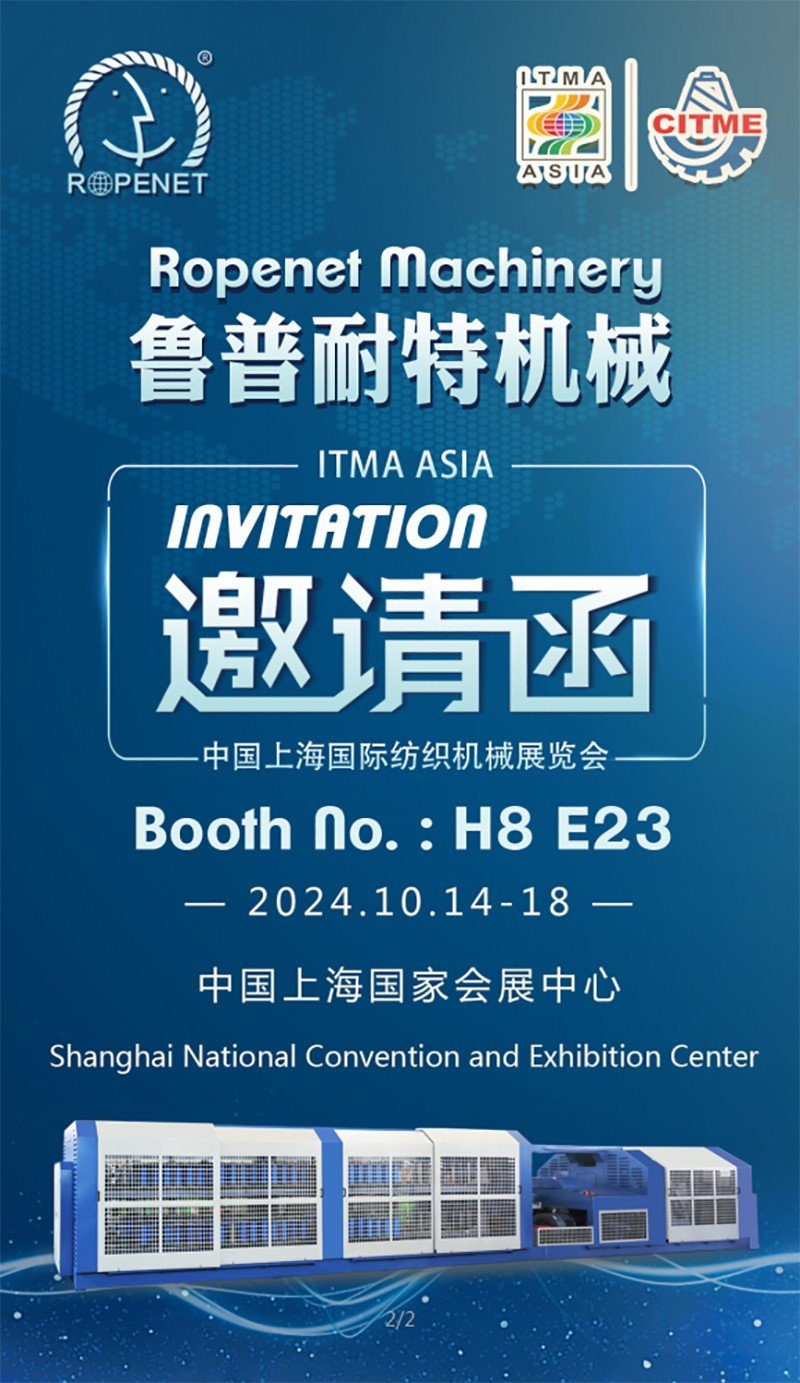 We cordially invite you to the Shanghai International Textile Machinery Exhibition from October 14th to 18th, 2024, and our booth H8E23. Here, you will see LOOP-Ropenet innovative technologies and products, and feel our passion for the industry and respect for our customers. We look forward to discussing the future of textile machinery with you and creating a better future together!