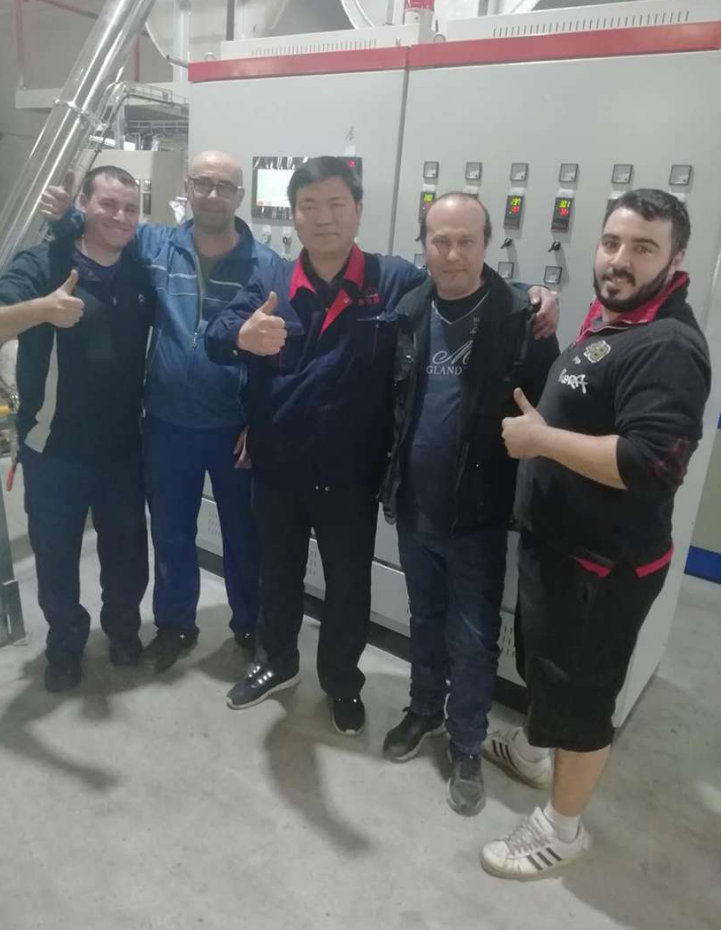 On January 6, 2019, two engineers from Ropenet Machinery went to Spain to install the PET monofilament extruder machine for customers, instructed and trained employees in the operation and maintenance of machine. On the 17th, the extruder machine worked well and it produced the yarn that meet the requirements. Equipment and engineers have been highly recognized and praised by customers. They plan to order more machine from our company soon.