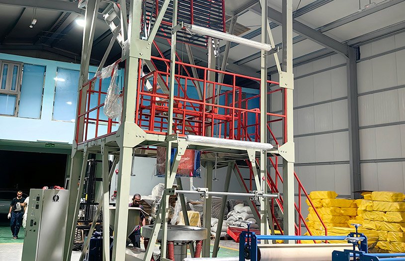 In August 2025, the ROPENET professional engineering team arrived at the client's factory and successfully completed the installation and commissioning of several core pieces of equipment, including a blown film machine, a balling machine, a high-speed twisting and spooling machine, and a tear-film binding rope drawing machine.