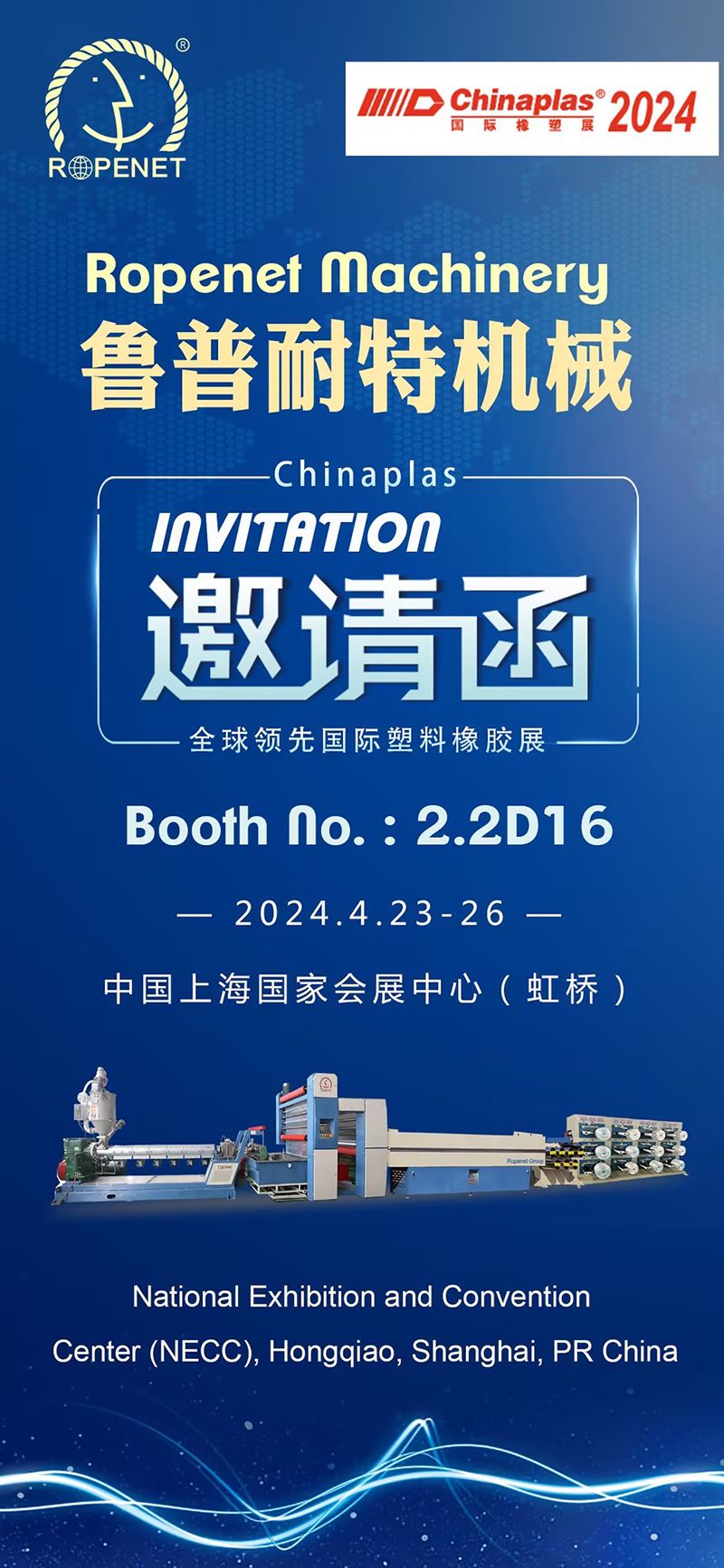 Dear customer, on behalf of Shandong Ropenet Machinery Co., LTD., I extend my sincere greetings to you. We are very proud to present our products and services at the International Rubber & Plastics Exhibition, booth No. 2.2D16. We are convinced that this exhibition will provide us with a platform to showcase our strength in technology and meet new partners.