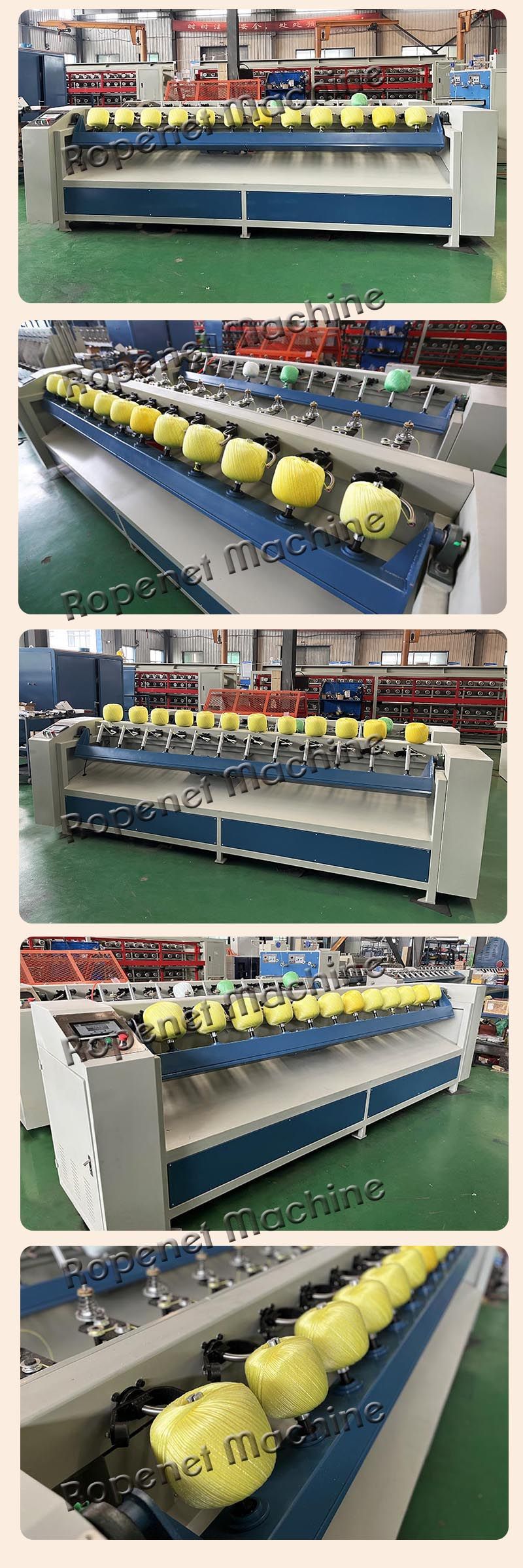 Multi-heads Ball Winder is suitable for winding different size of PP Split-film, flat yarn, cotton into ball shape. The machine can realize count automatically, multi-heads same working, shape various.