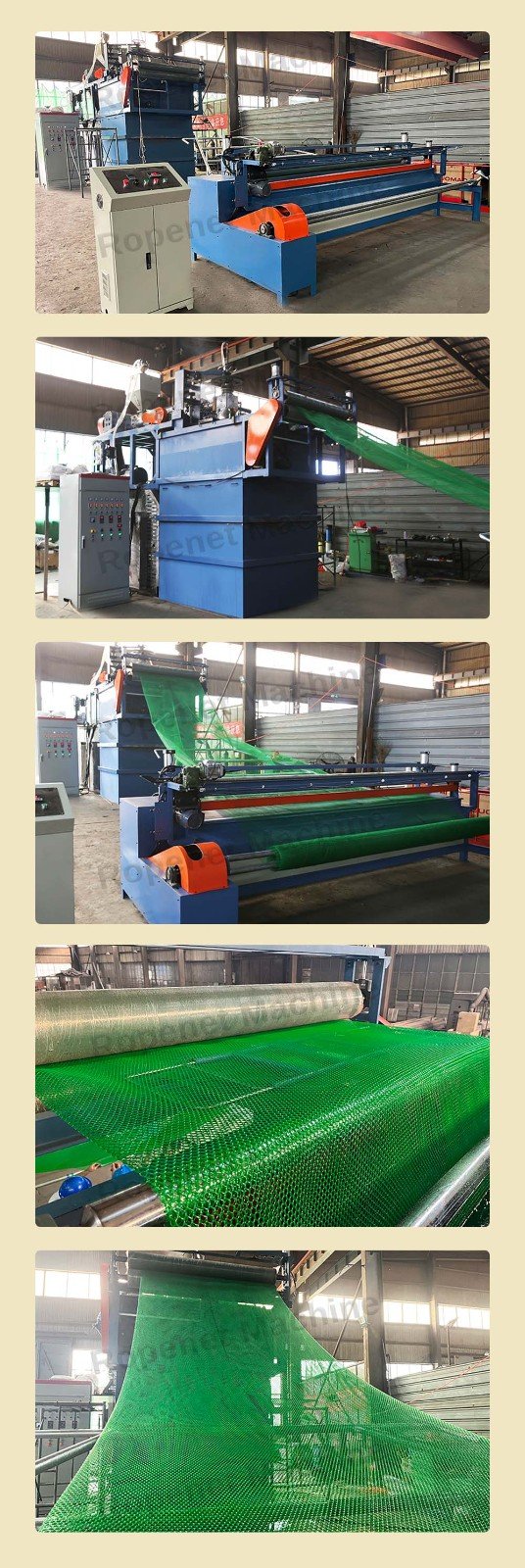 The machine is suitable for producing three-dimensional vegetation nets of different specifications. The process is easy to be adjusted. It has integrated adjustment for net extruding and winding, simple structure and easy to operate and maintain.