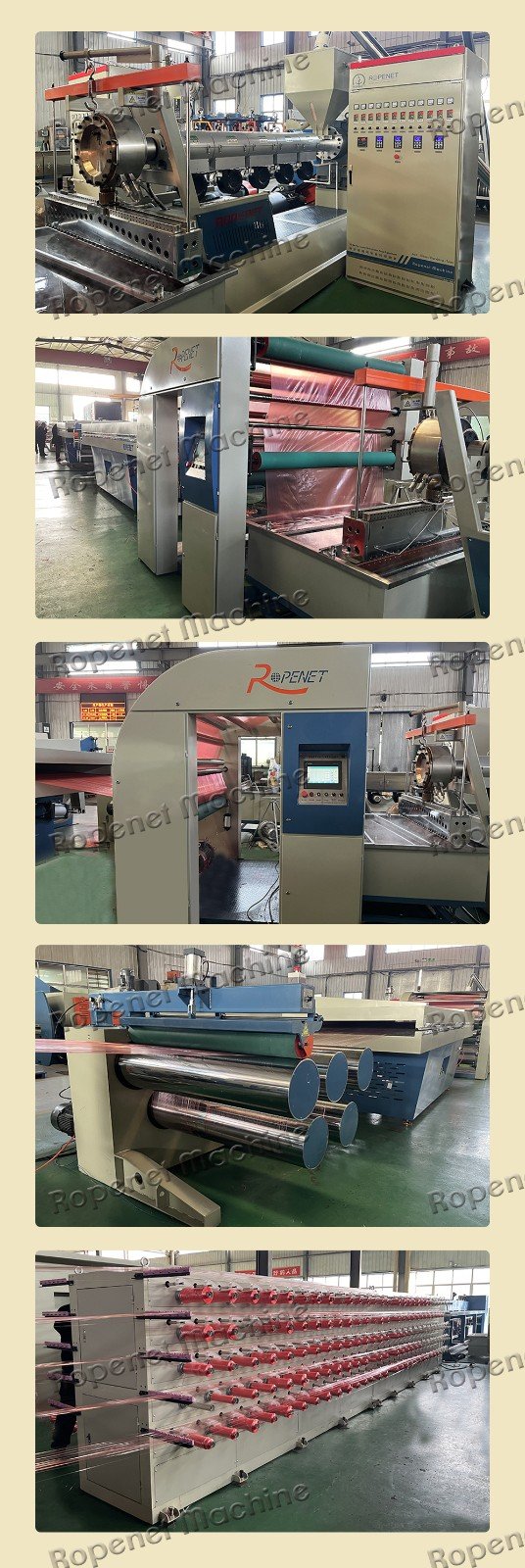The machine can produce different size of PP, HDPE tape yarn which is widely used to produce woven bag, jumbo bag, FIBC, geotechnical cloth, tarpaulin etc. The machine has the characteristics of high efficiency, uniform thickness, long life span, easy maintenance.